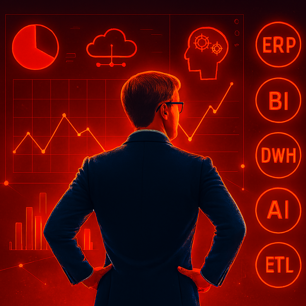 Veri mimarisi tasarımı, veri kalitesi yönetimi, veri entegrasyonu, iş zekası ve analitik çözümlerinin yanında ERP geliştirmeleri ve dönüşümleri ile birlikte kaynak yönetimini kapsar.